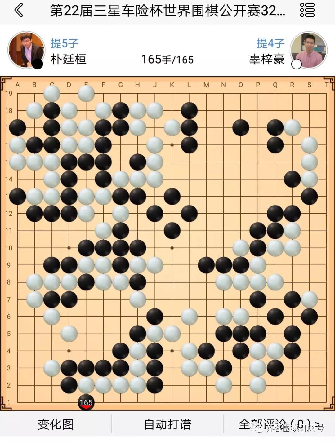 第22届三星车险杯世界围棋公开赛32强朴廷桓执黑中盘胜辜梓豪