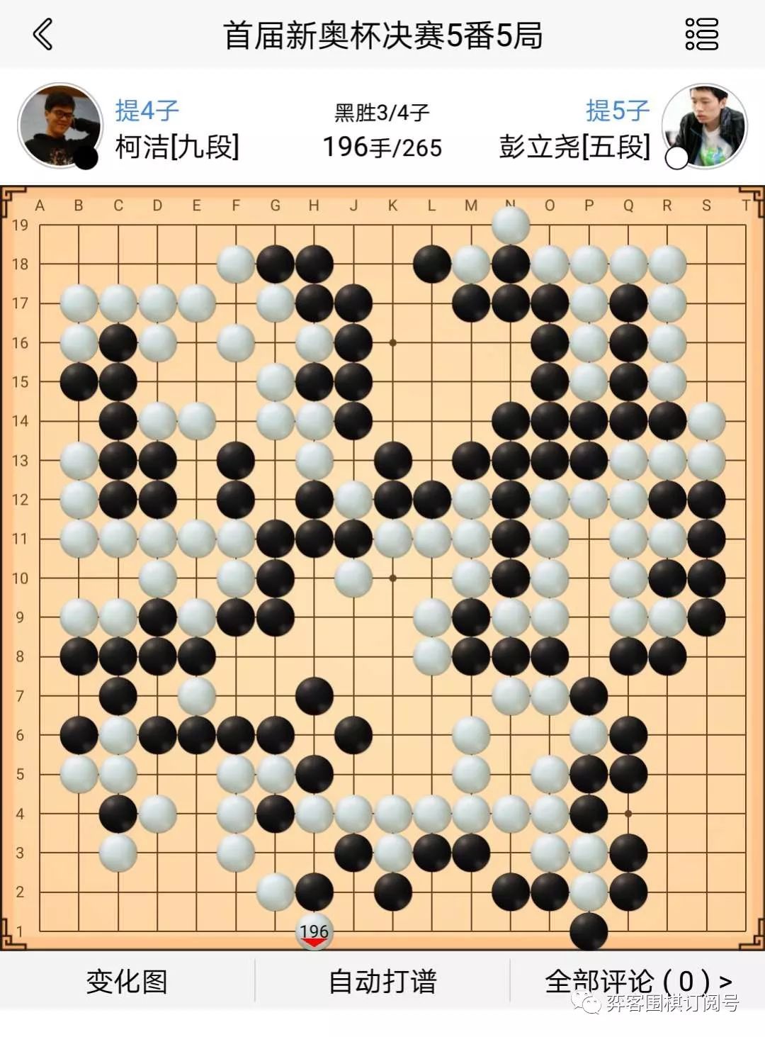 首届新奥杯决赛5番棋第五局柯洁执黑半目胜彭立尧
