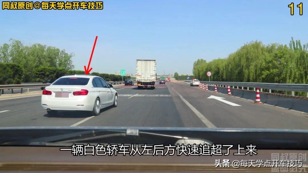 一辆白色轿车从左后方快速追超了上来,