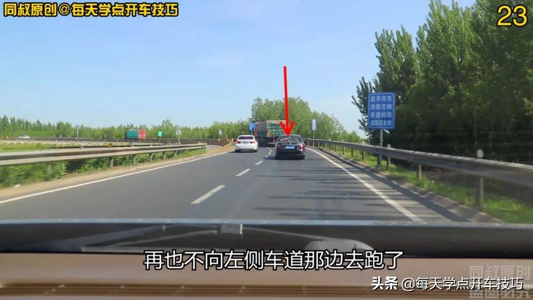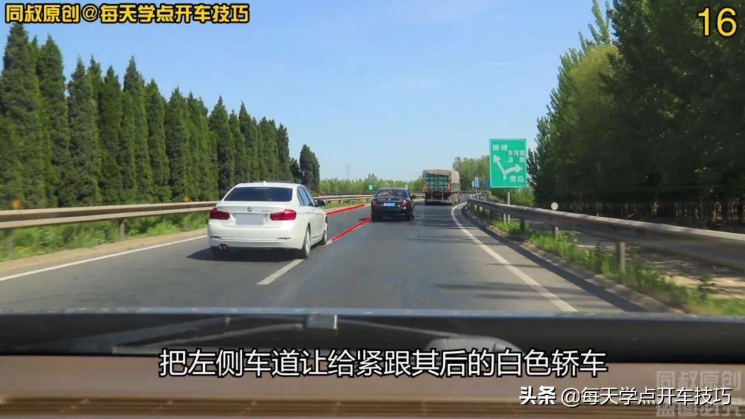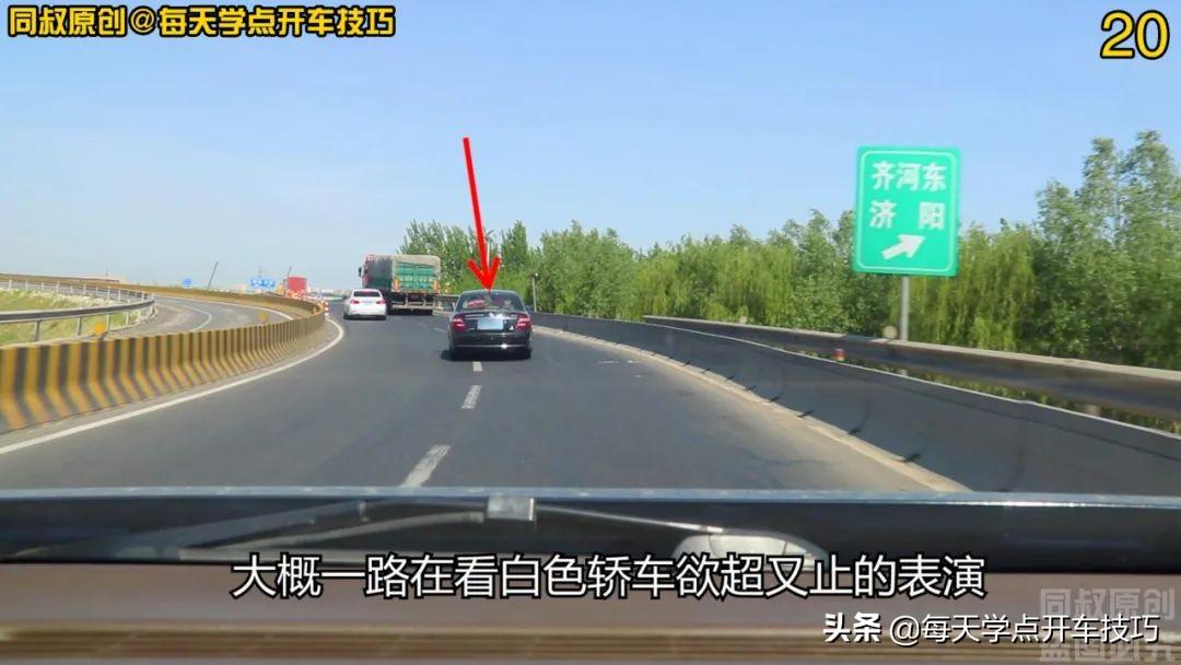 而这一路,黑色轿车因为选择了右侧车道跟行,反而淡定了很多,大概一路在看白色轿车欲超又止的表演。