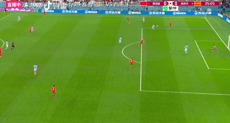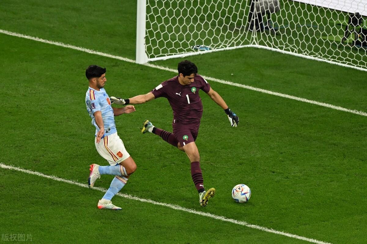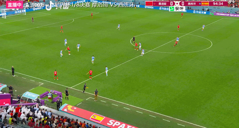 第二轮,摩洛哥队的齐耶赫把点球打进,西班牙队的索莱尔的点球被布努扑出来了,西班牙队0-2摩洛哥。