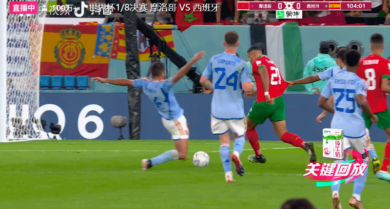 第四轮,摩洛哥队的阿什拉夫把点球打进,最终在点球打中3-0淘汰了西班牙队!