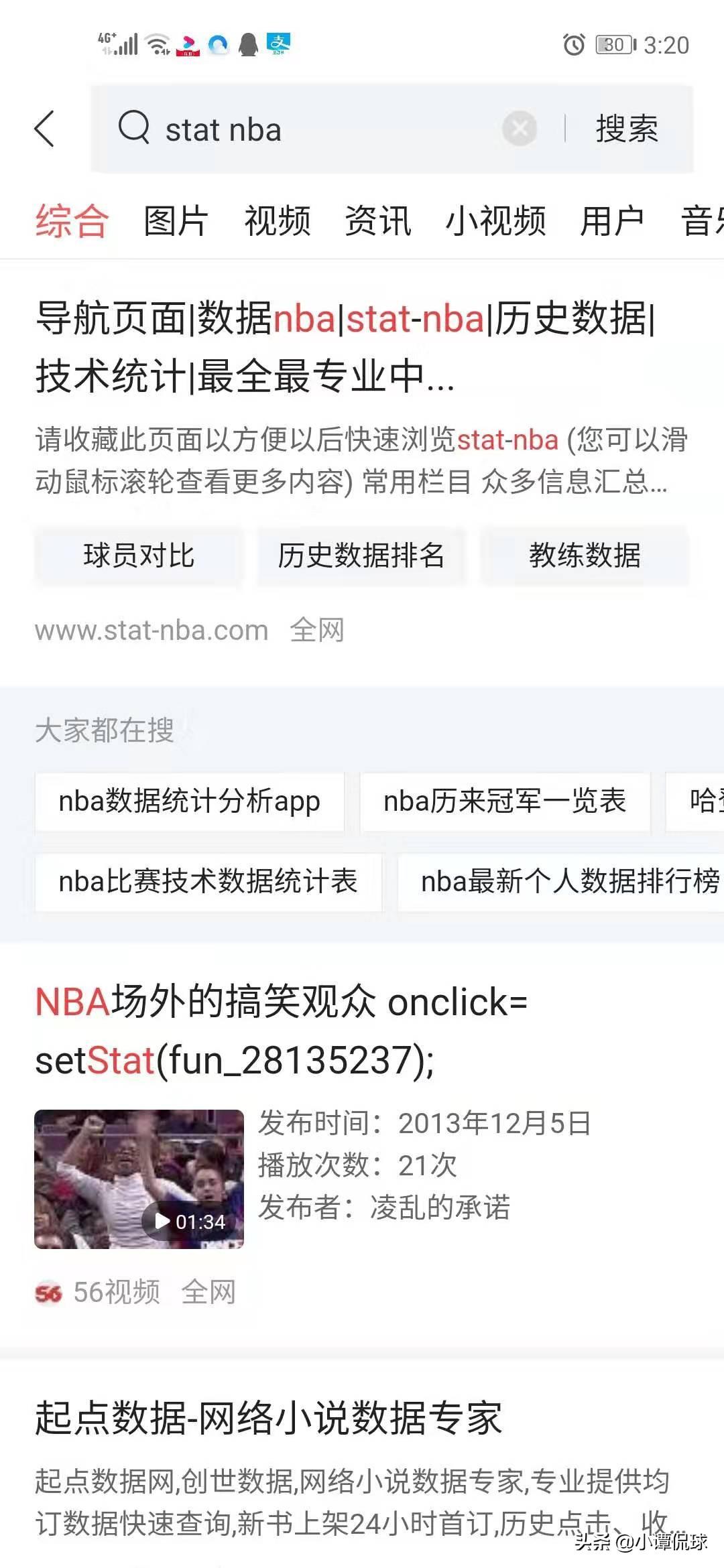 作为一名体育自媒体人,在此之前,“新浪”、“虎扑”之类的网站也是我经常浏览的网站,但往往很多自己想要的数据却找不到,在参加了头条的第一期“搜索PLUS”活动获奖之后,对于头条的搜索功能有了重新的认识,试着在头条上搜索了一下NBA的全面数据,果真发现了一个数据相当全面的网站——STAT NBA 。