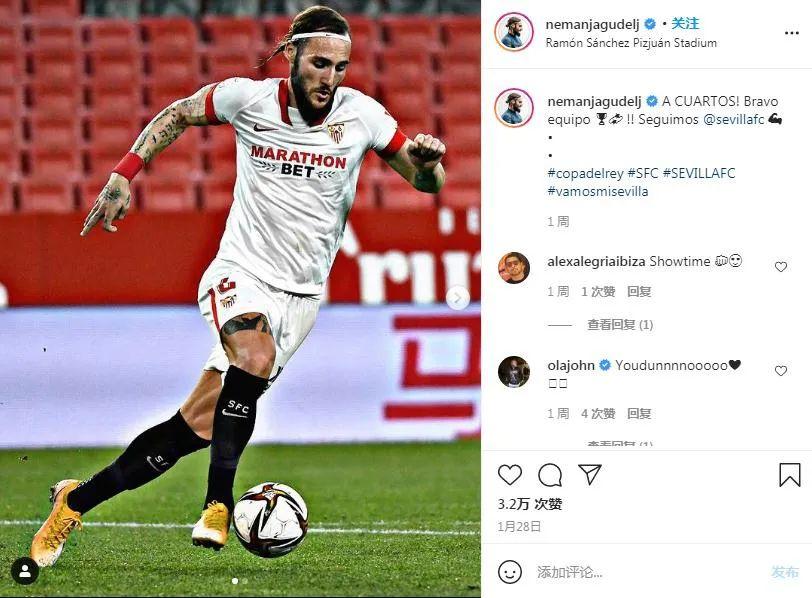 除迪亚涅,古德利近年来的职业轨迹也相当不错。在辗转广州恒大、葡萄牙体育后,塞尔维亚人在西甲劲旅塞维利亚队站稳了脚跟,成为了球队中场位置上的轮换球员。迄今为止,古德利已经代表球队出战了 64 场比赛。在 2019 - 2020 赛季里,他还随塞维利亚队夺得了欧联杯的桂冠。