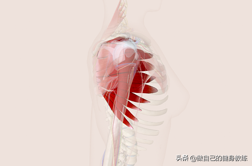 当一边的前锯肌收缩,胸椎就会往对侧移动,例如:右边前锯肌收缩,胸椎就会往左边移动,因此,练好前锯肌,可以避免胸椎有歪斜的情况。
