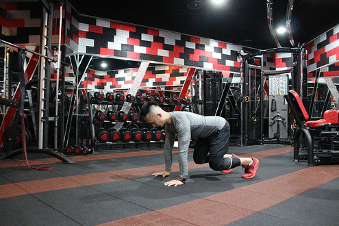 (2)右手往前移动时,左脚同时跟上,再换左手和右脚往前,重复动作。
