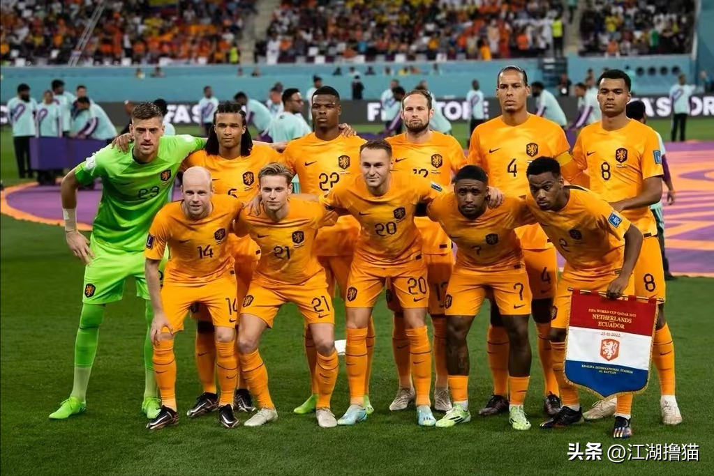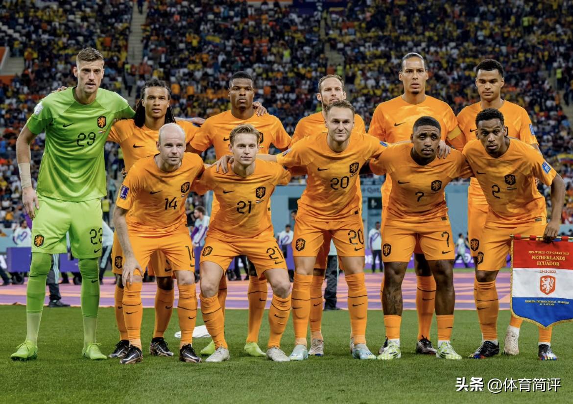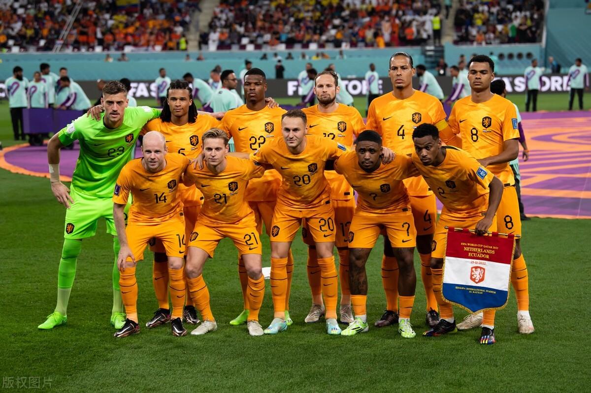 荷兰队由于比赛服为橙色,俗称“橙衣军团”,前两场分别对阵塞内加尔,比分2:0,对阵厄瓜多尔,比分1:1,整体积4分,荷兰队目前实际上已经提前出线,目前的目标是拿到小组第一名出线,因为如果以小组第二的身份出线的话会遭遇强队英格兰,这是荷兰队不想看到的。
