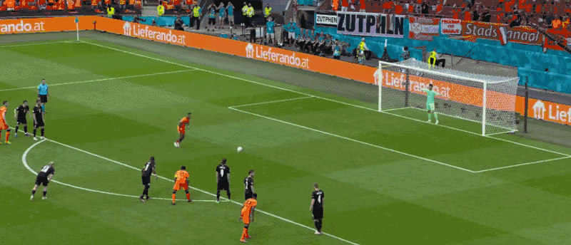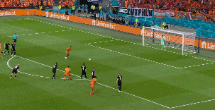德佩主罚点球,他右脚打球门左下角,门将没有办法,荷兰队1-0领先奥地利队。
