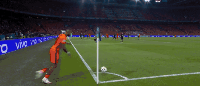 比赛第95分钟,荷兰断球反击,马伦右路突进后直接起脚远射把球打飞。
