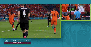 第5分钟,乌尔默突入荷兰队禁区,和邓弗里斯对抗后倒地,裁判没有表示。随后荷兰队打反击,维纳尔杜姆直塞禁区左侧,巴赫曼在韦霍斯特之前先得到球。第8分钟,德弗里带球突入奥地利队禁区左侧,在和防守球员接触后倒地,裁判也没有表示。但随后,阿拉巴在禁区角上踩到邓弗里斯的左脚,主裁观看VAR后判罚了点球,还给了阿拉巴一张黄牌。