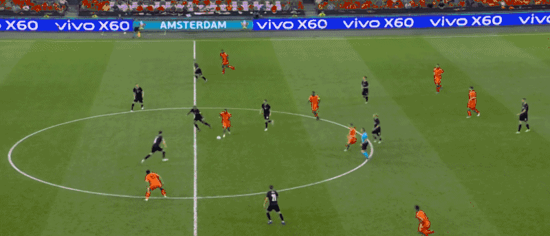 比赛第67分钟,德佩中圈弧挑传,马伦左路长途奔袭杀入禁区后无私横传,邓弗里斯包抄破门,荷兰2-0领先!