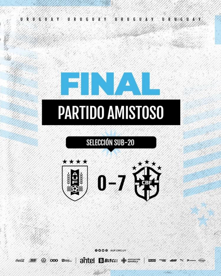 直播吧6月13日讯 乌拉圭U20国家队今天与巴西U20进行了友谊赛,结果乌拉圭0-7惨败。