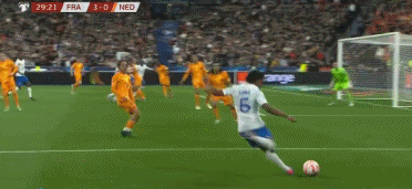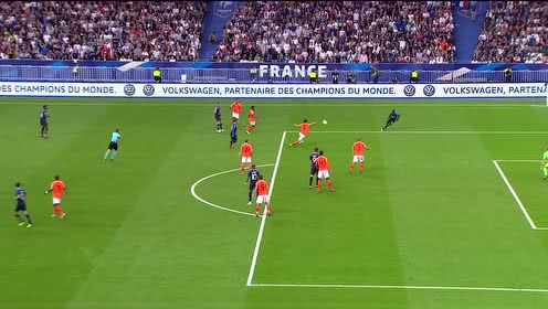 第88分钟,荷兰队后场传球失误被断,姆巴佩带球突入禁区连续假射晃开角度后抽射破门,法国队4-0领先。