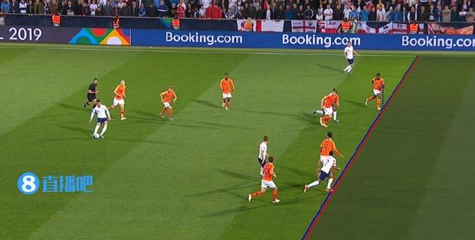 1-0落后加上体力下滑,荷兰队似乎全员泄了气,没有了开场时的犀利压迫,英格兰由此可以更从容的将进攻推进到三十米区域。