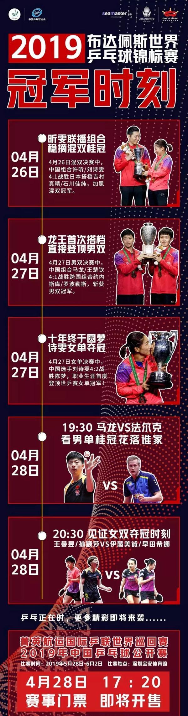 作为2019年上半年国内举办级别最高的乒乓球赛事,赛事规格将进行全面升,赛事组委会将通过精心策划的系列赛事及配套活动,包括球迷嘉年华、乒乓进校园公益活动、儿童日主题活动等,多维度提升观赛体验,打造更为精彩的“国球”盛宴。届时市民朋友们可关注赛事官方微信公众号“2019年中国乒乓球公开赛”获取更多票务信息和赛事信息。