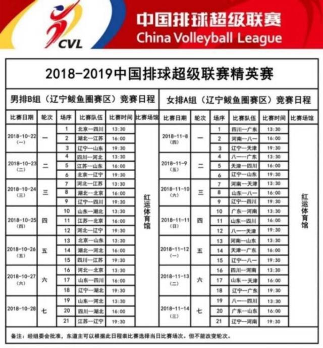 2018至2019赛季全国女排联赛今天在辽宁和上海同时拉开战幕,联赛第一阶段的所有比赛将在这两个地方进行,两个赛区各有七支球队争夺小组前四名比赛,目前辽宁赛区和上海赛区的具体对阵形势以及比赛时间都新鲜出炉。每个赛区每天都有三场比赛,三场比赛的开球时间分别是下午14点、16点以及晚上19:30。