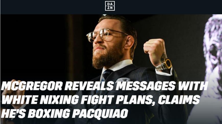 嘴炮说:“接下来,我要与帕奎奥在中东打拳击赛,能与当代最伟大的2位拳手(梅威瑟和帕奎奥)交锋,是我的至高荣誉。我之前一直在推动UFC的比赛,现在我要推动UFC和拳击两大运动。今年大环境所致,我等待了太久,老天作孽。我要抓紧时间。”