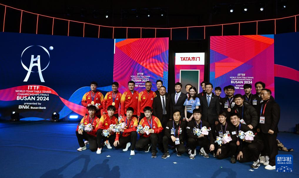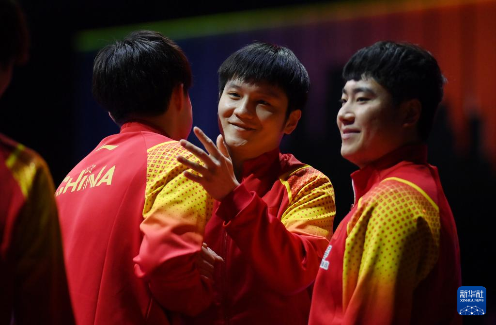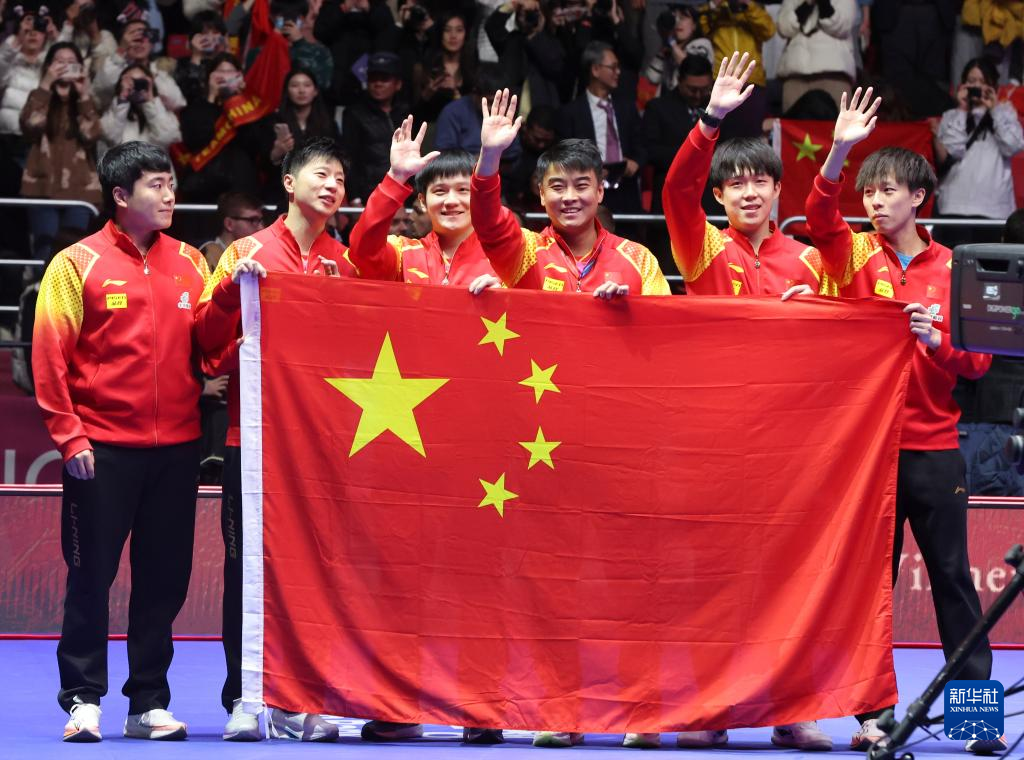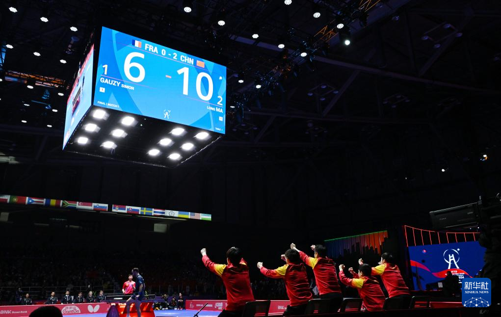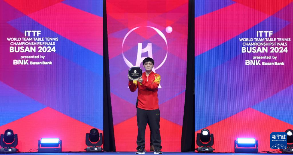 当日,在韩国釜山进行的2024年国际乒联釜山世界乒乓球团体锦标赛男子团体决赛中,中国队3比0战胜法国队,夺得冠军。