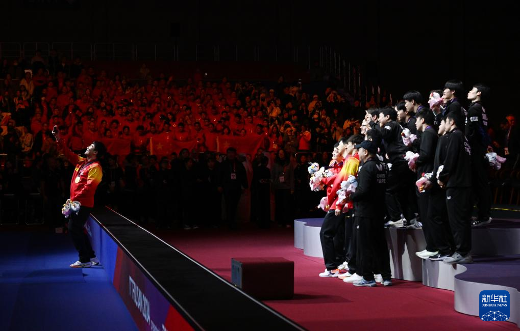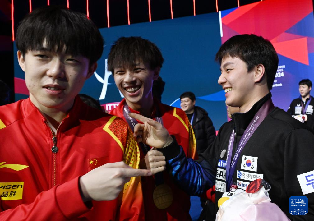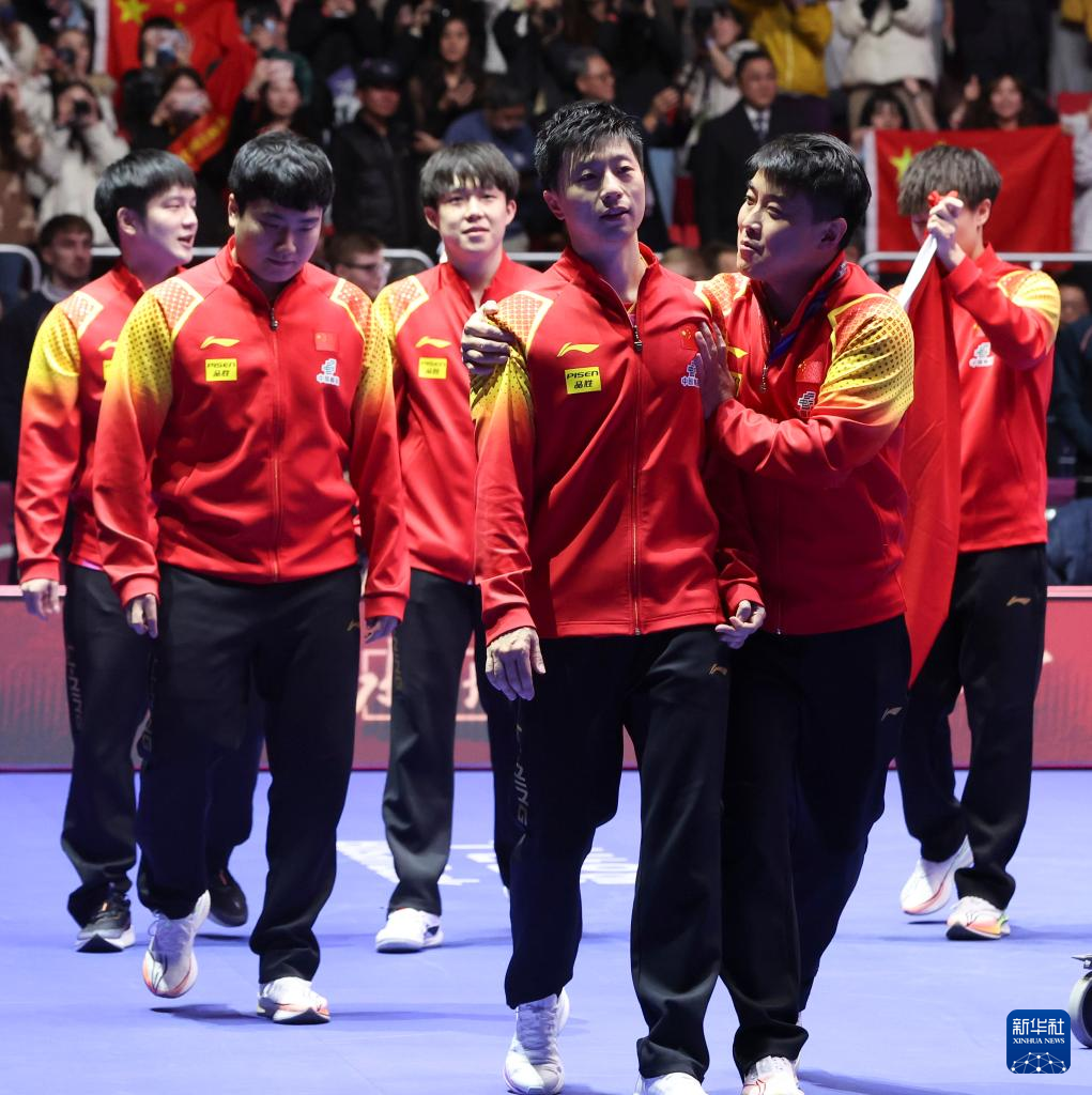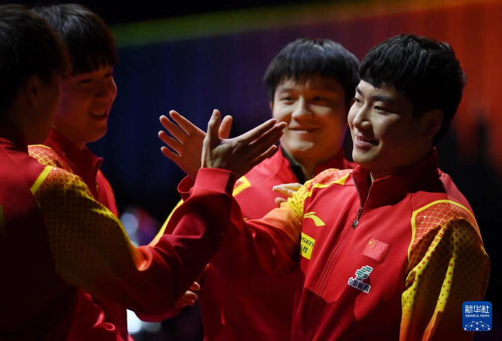 当日,在韩国釜山进行的2024年国际乒联釜山世界乒乓球团体锦标赛男子团体决赛中,中国队3比0战胜法国队,夺得冠军。
