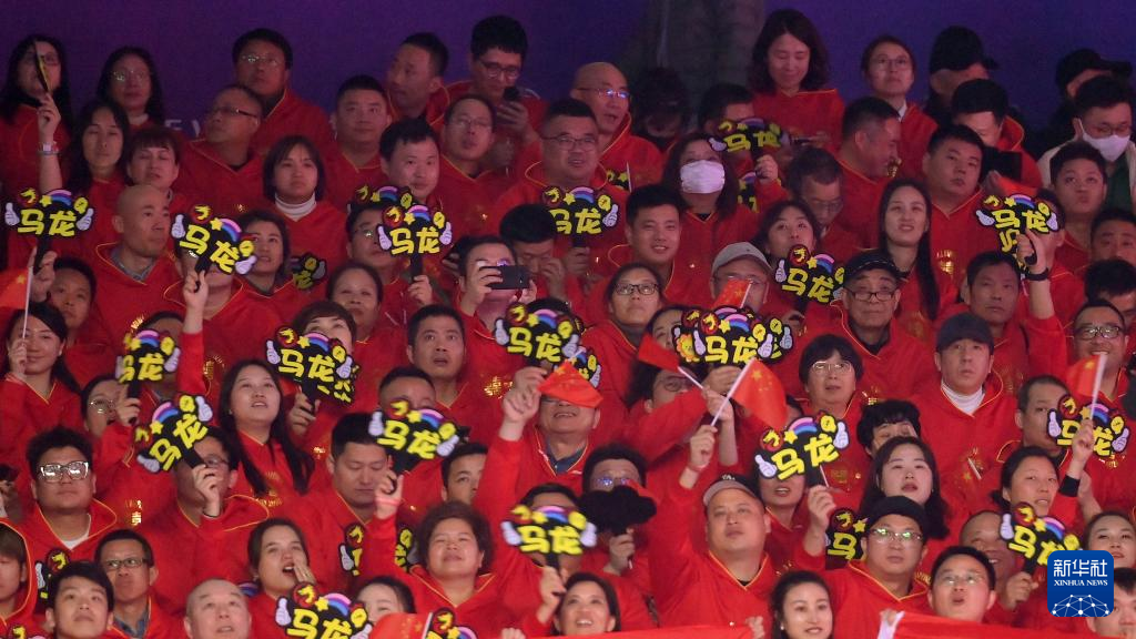 2月25日,中国队球迷为马龙加油。新华社记者 陶希夷摄