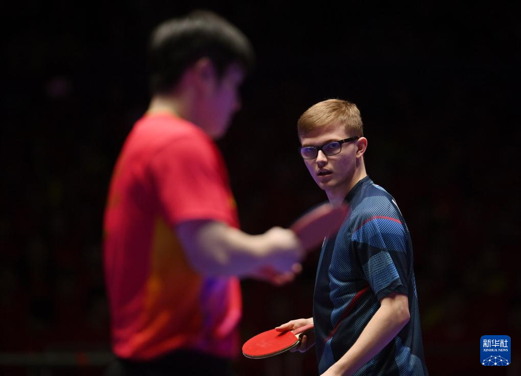 2月25日,法国队选手艾利克斯·勒布伦(右)与中国队选手樊振东在第二盘比赛中,艾利克斯·勒布伦2比3不敌樊振东。新华社记者陶希夷 摄