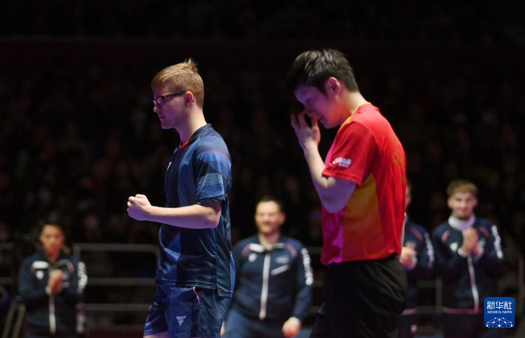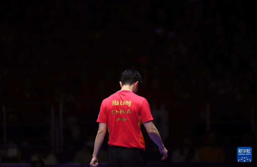 2月25日,中国队选手马龙在第三盘比赛中,他3比1战胜法国队选手西蒙·高兹。新华社记者 陶希夷 摄