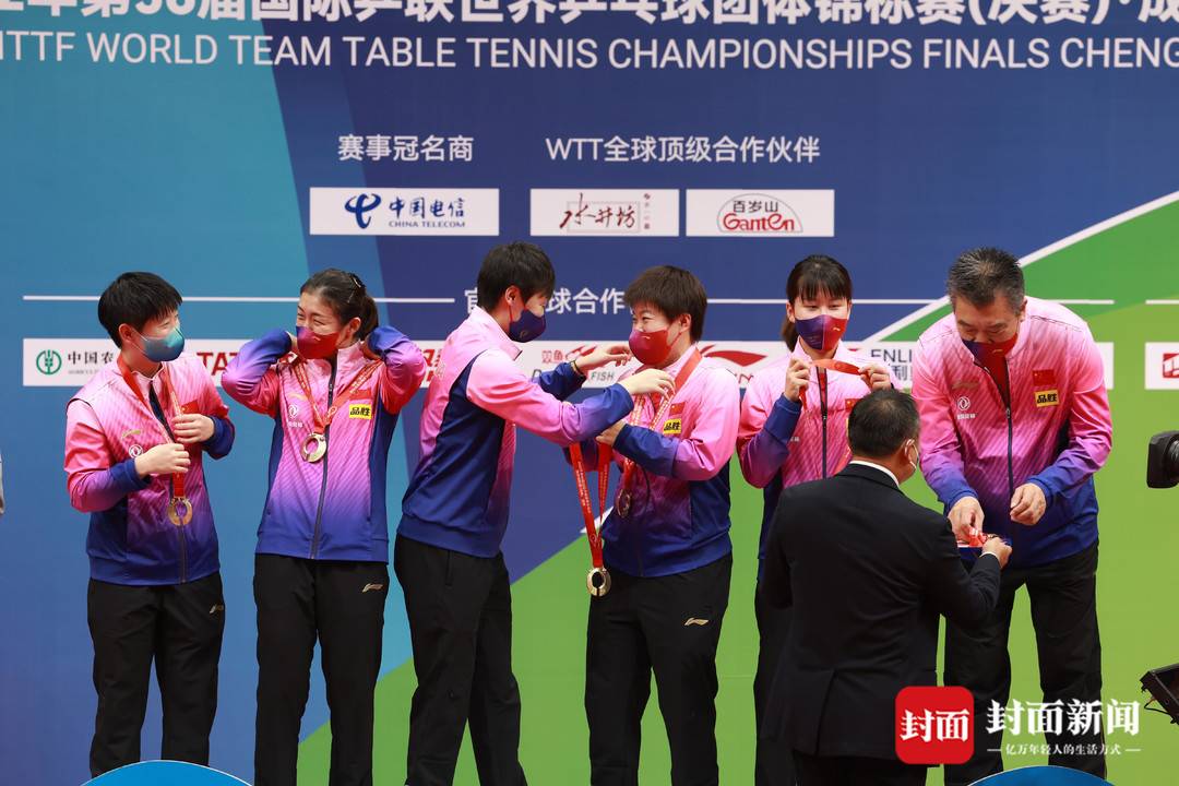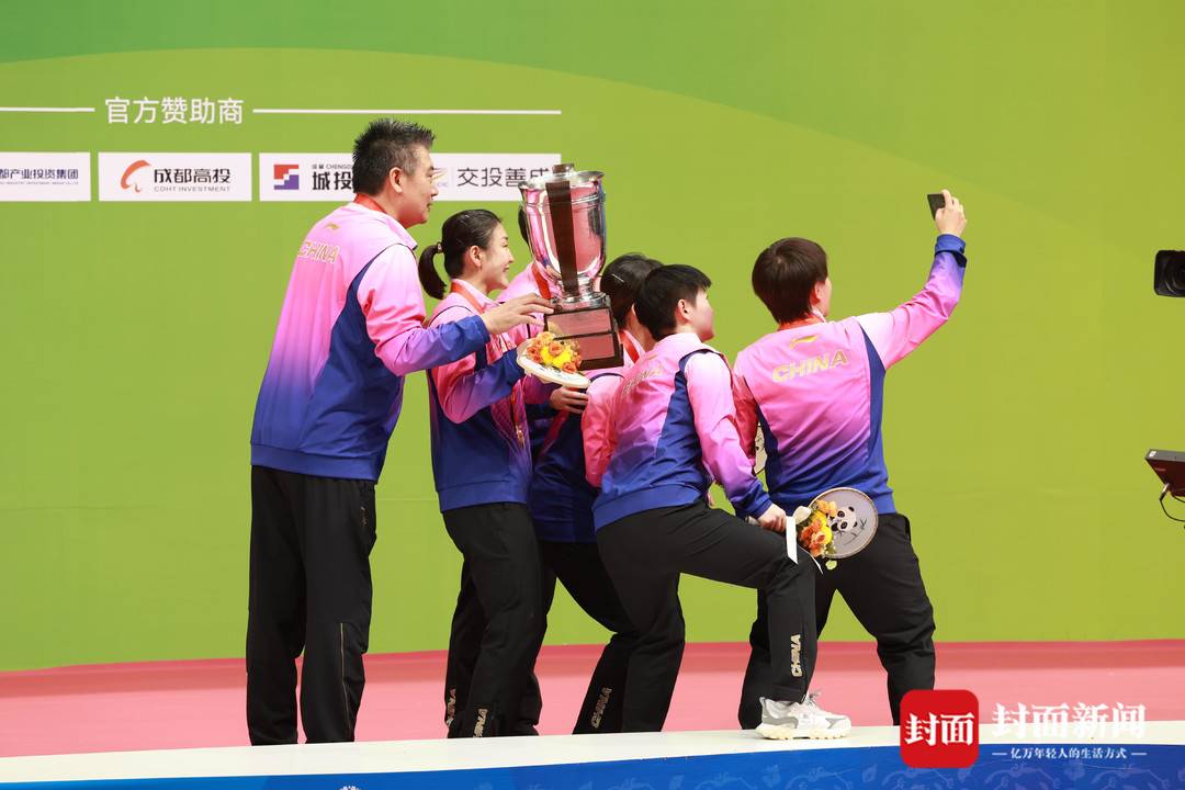 赢得冠军后,陈梦、王曼昱、孙颖莎、王艺迪、陈幸同五位女团姑娘们与教练李隼牵开五星红旗,向在场的观众致谢,在随后进行的颁奖典礼上,中国队捧起考比伦杯!