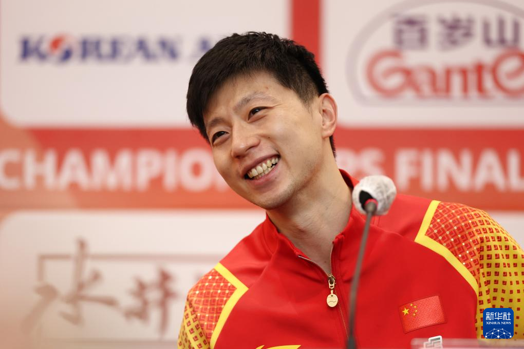 2月25日,中国队选手马龙赛后出席发布会。新华社记者 张涛摄