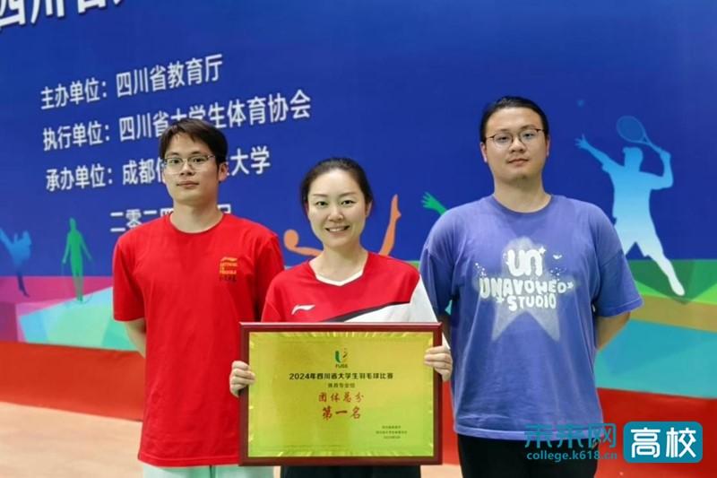 成都体育学院羽毛球代表队参加了体育专业组男单、男双、女单、女双4个项目的比赛,在教练员、运动员的共同努力下斩获了4枚金牌,包揽了男单、男双和女双项目的冠亚军,并以绝对优势荣获体育组团体积分第一名。本次比赛学校羽毛球代表队参赛阵容以大一同学为主,年轻队员们虽然都是第一次代表学校出征,但是面对各大高校对我们的冲击,他们奋力拼搏,展现了平时刻苦训练的成果,捍卫了学校荣誉。