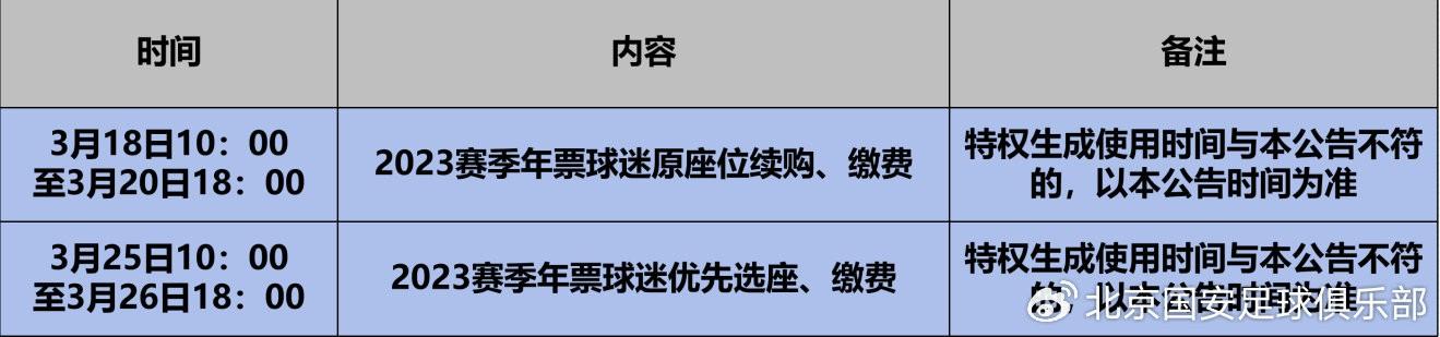 1、2023赛季购年票球迷原座位续购、优先选座时间