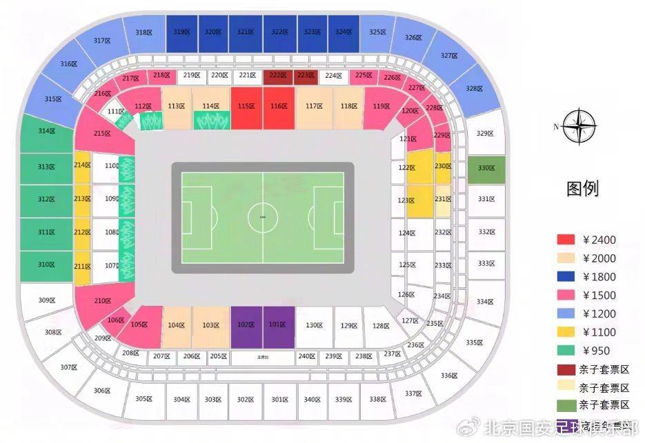 2024赛季北京国安年票严格采取对号入座方式,票区分布明细如下: