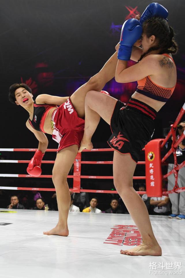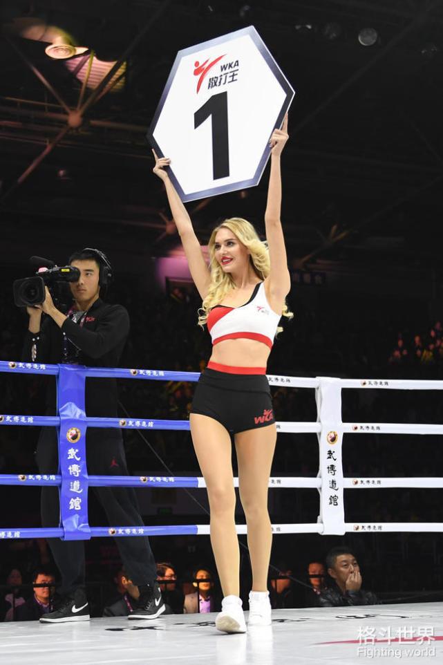 首先进行的女子表演赛,中方选手王聪,面对曾获得散打、跆拳道、泰拳三项世界冠军的乌克兰选手纳塔莉亚,一开场就用两记高扫,拉开了进攻序幕,以压倒性的优势,拿下了前两个回合,在第三回合击倒对手,最终以TKO获胜。