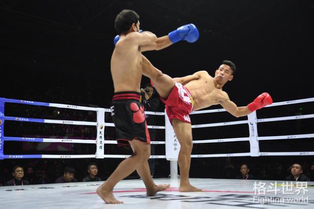 当晚焦点战——男子80公斤级。中方选手付高峰,是被誉为“柳海龙接班人”的散打领军人物、“当代散打第一人”,而他的对手,则是来自韩国的仁川亚运会冠军得主、世锦赛亚军金明真。比赛一开场就充满了火药味,双方在第一回合展现了恐怖的输出能力,激烈而连续的对攻,将现场气氛推向高潮,不料,第二回合,形势急转直下,金明真在对攻中被付高峰一记低鞭腿命中右腿,旧伤复发,最后不得不被迫弃权。新一代散打之王付高峰,兵不血刃,轻松拿下比赛,同时也得到自己梦寐以求的世界超级散打王。