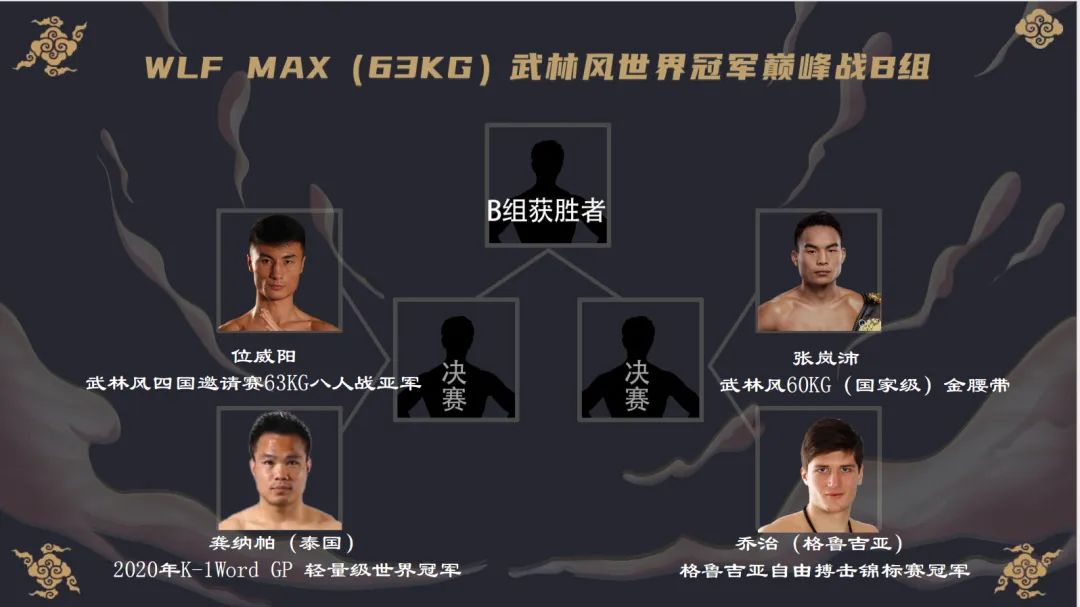 而与这两人同在B组的选手,分别是来自中国的“风雨者”位威阳以及来自泰国的龚纳帕,位威阳近期正在积极备战,他的目标是63公斤级的世界冠军,他一直渴望能够与高手对抗,他说:“我很感谢武林风给自己这次机会,同时他自己一定会牢牢地把握住这次机会。”
