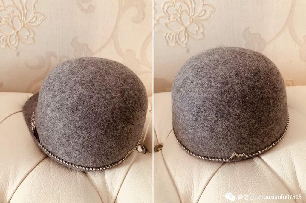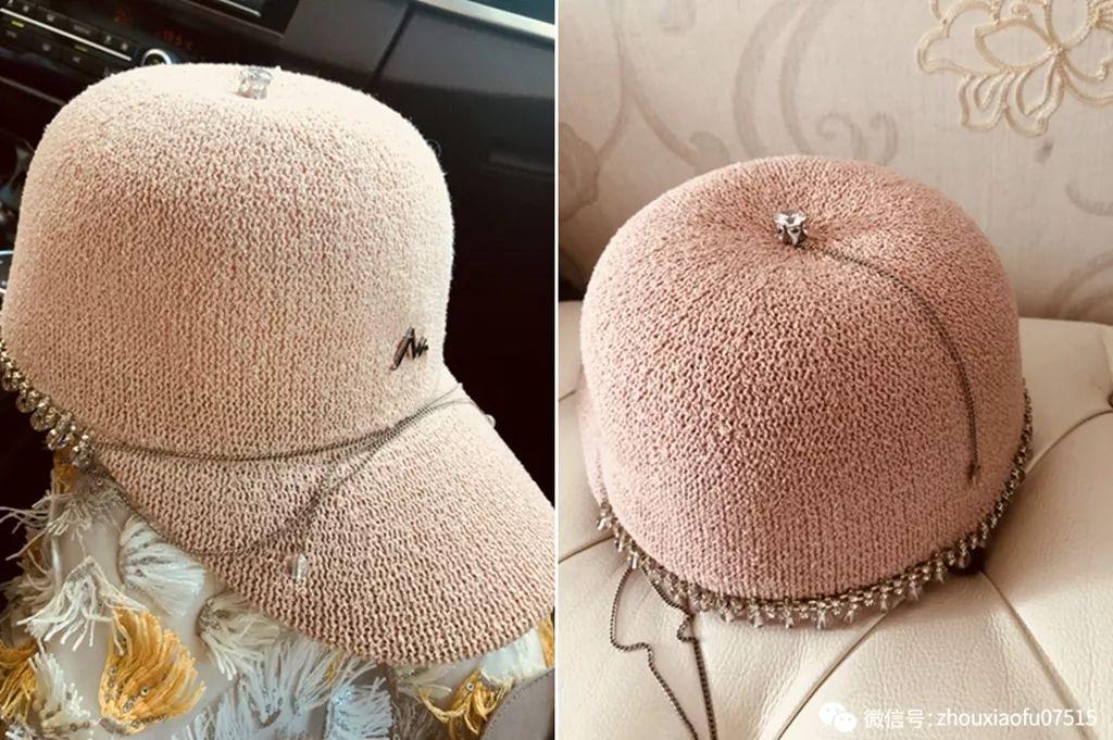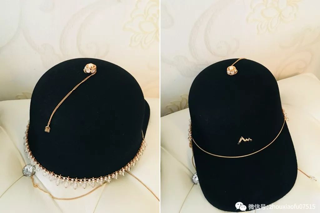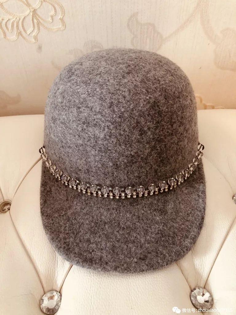 这款是我最爱的一顶马术帽,颜色、款式、设计,最重要是百搭。它的前沿有一圈水钻,帽子后面本来有设计,具体是什么我忘记了,总之当时不喜欢,我就请设计师帮我去掉了,这样更简洁大气。