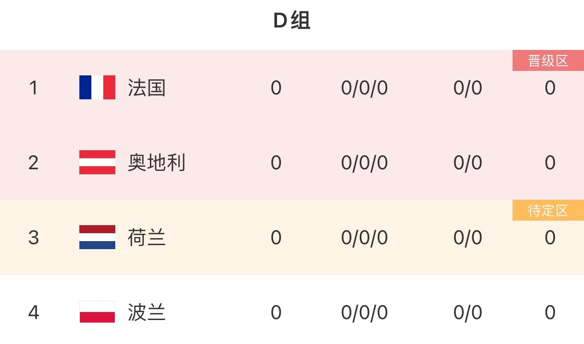 荷兰本届欧洲杯与法国、奥地利、波兰同组,欧洲杯前他们还将与加拿大和冰岛进行热身赛。