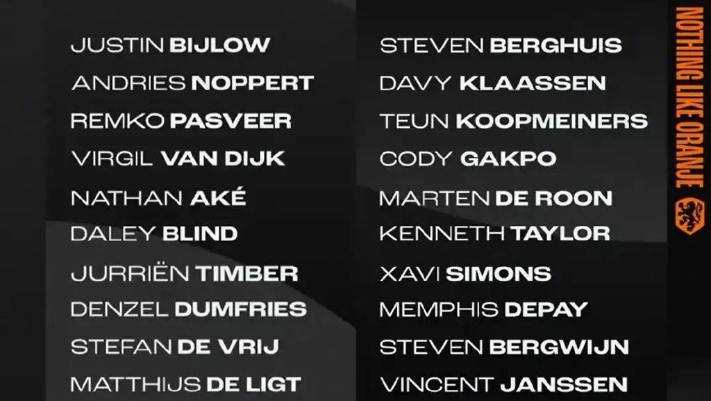 直播吧05月29日讯 荷兰男足国家队公布欧洲杯26人最终名单,范迪克领衔,德容、德里赫特入选,多特小将马特森落选,亚特兰大中场德容恩因伤无缘。