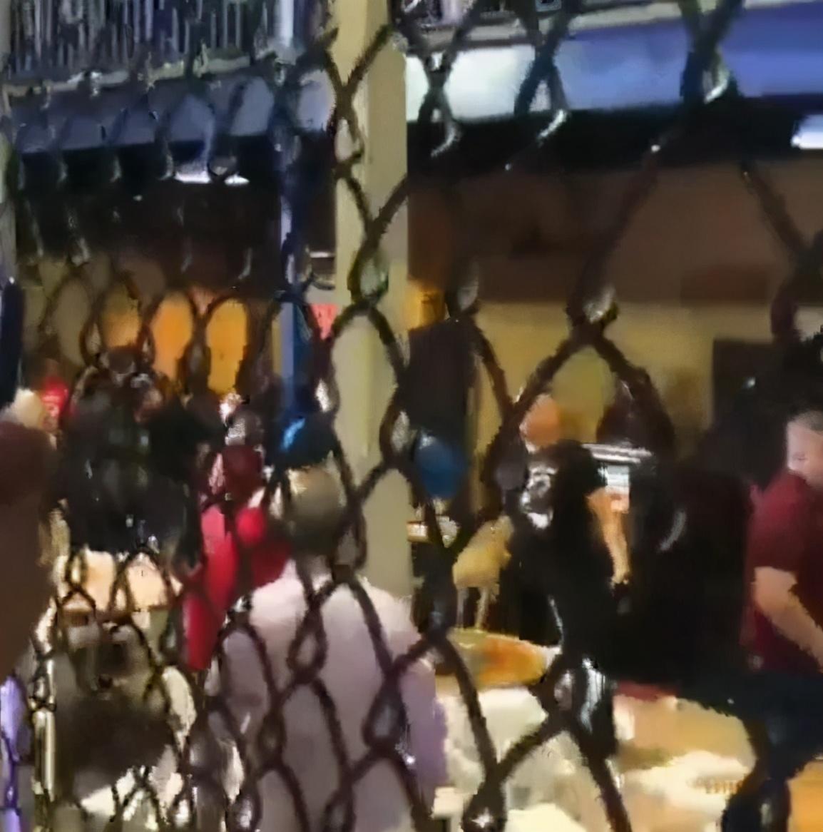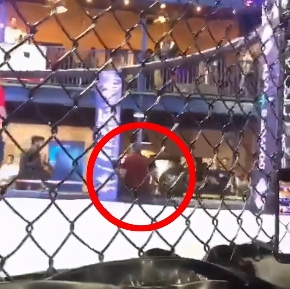 但是令人毛骨悚然的是,这时在二楼的看台还有很多在看斗殴的人群,万幸的是没有人被击中,真是个奇迹。枪响后视频中可以听到人们的尖叫声,现场变得更加混乱。