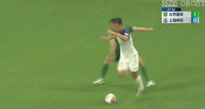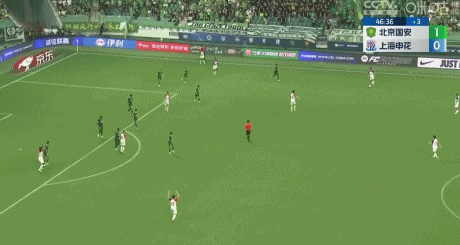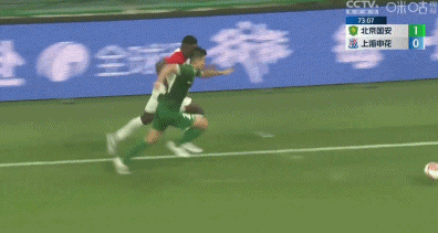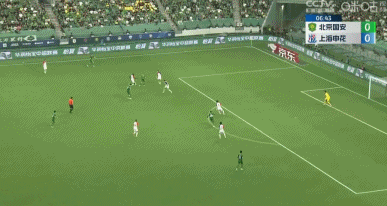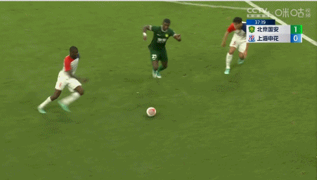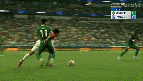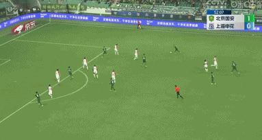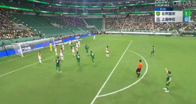 第23分钟,申花禁区内倒三角,皮球被化解
