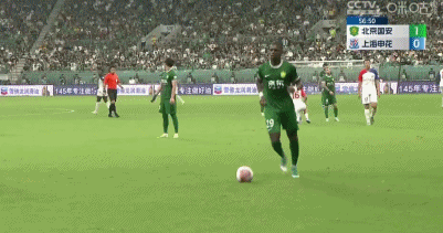 第11分钟,古加开出角球,恩加德乌头球破门,国安1-0!