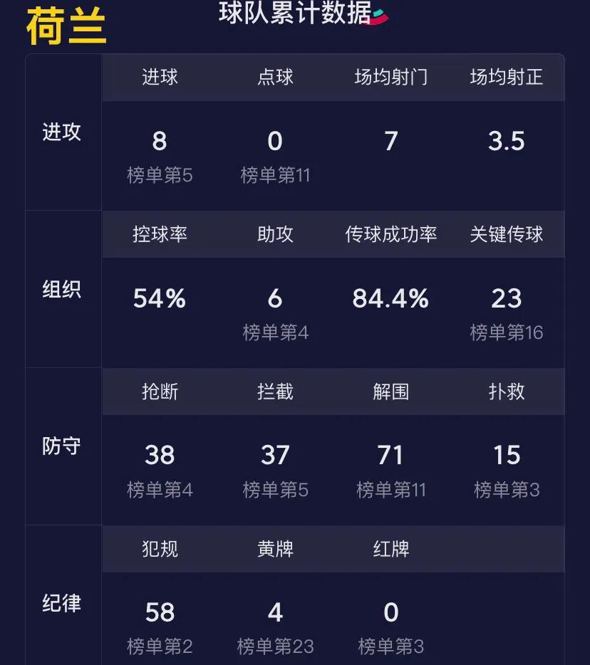 正所谓“厨子不看菜谱,改看兵法了”,郁金香军团放弃了昔日引以为傲的“全攻全守”,转而稳扎稳打,并在战术上贯彻防守反击。如此改变带来的收益也是显而易见的,目前他们在本届赛事中仍保持不败,邓弗里斯、德容、加克波等球员更是大放异彩。