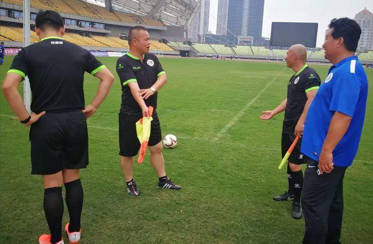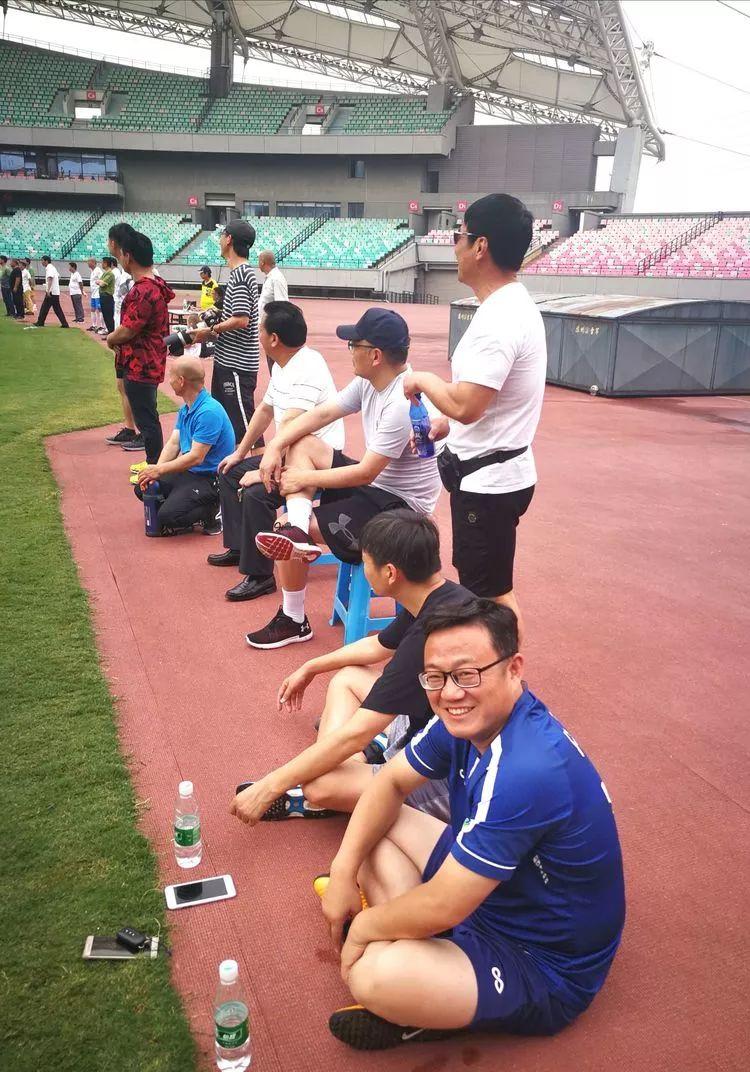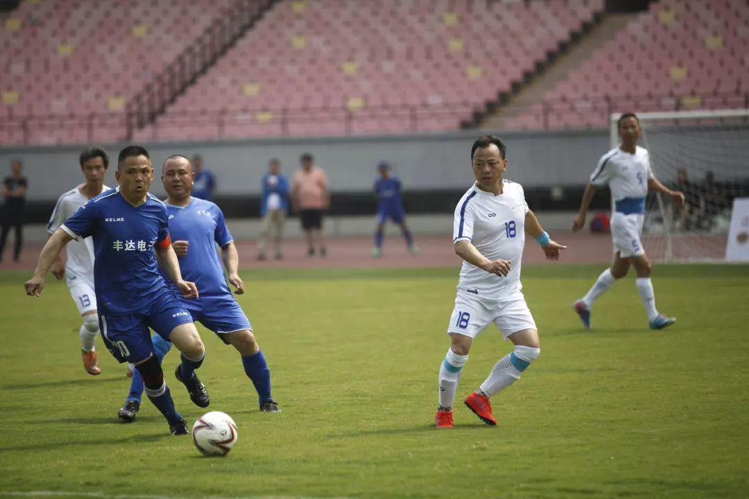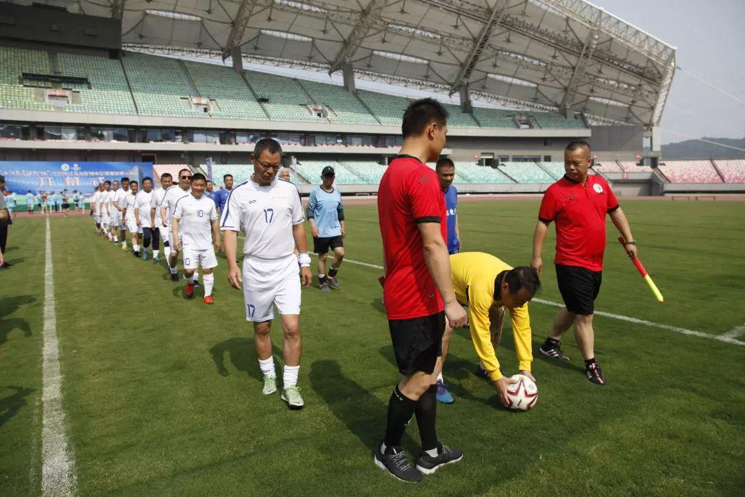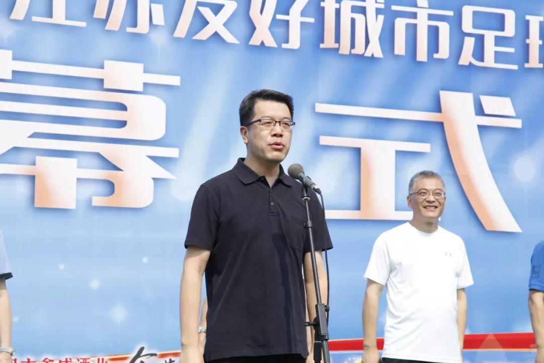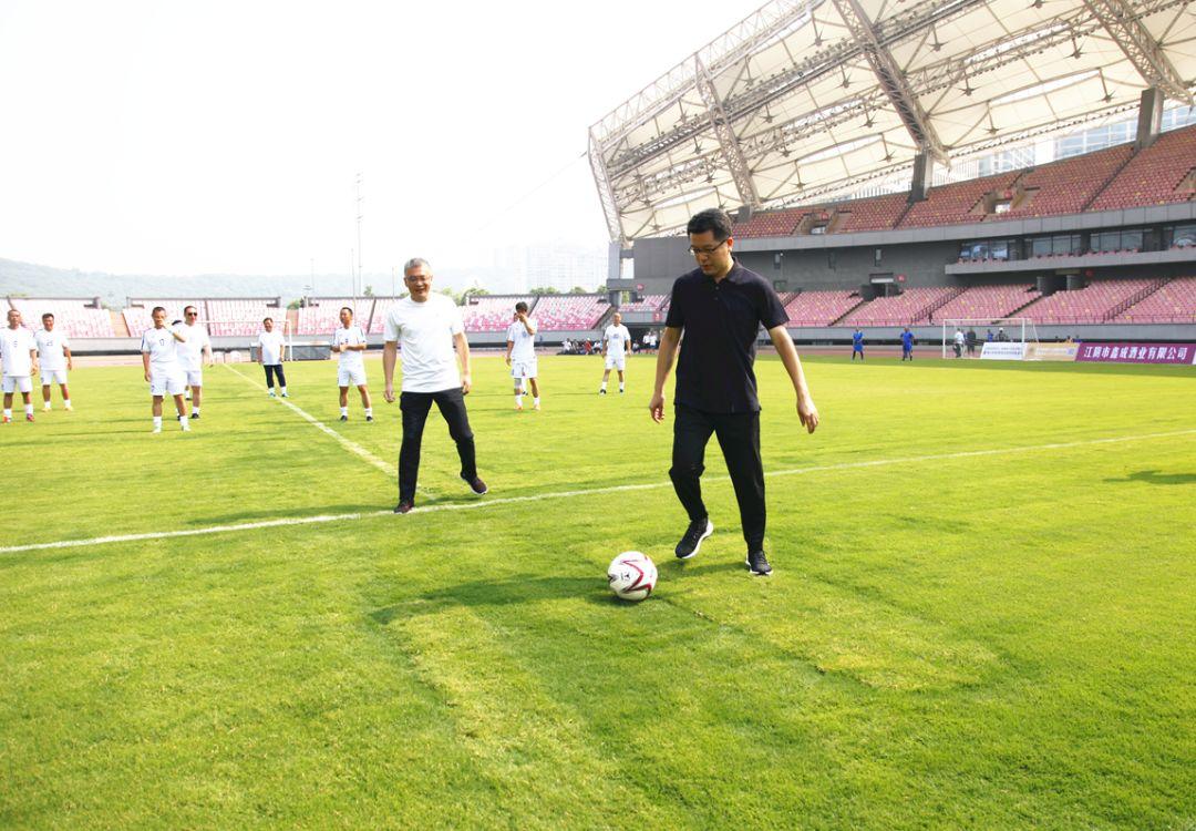 ▲中共江阴市委常委、宣传部部长程政宣布比赛开幕,并与江阴市足球协会主席,法尔胜泓昇集团董事长、党委书记、总裁周江为本届比赛开球。