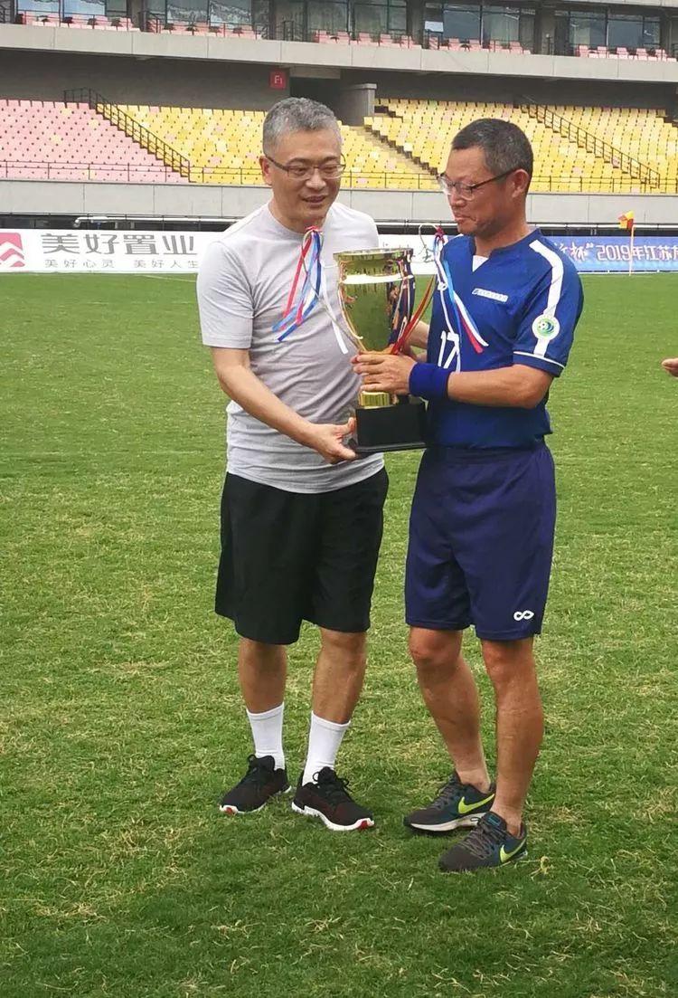 ▲周江为荣获本次邀请赛甲组冠军的江阴队颁奖。