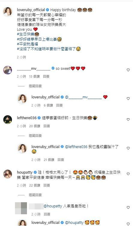 对此,林心如送给霍建华的华丽拳击手套蛋糕也引起许多网友讨论,纷纷留言「明年叫你老公再培养新的兴趣好了,就会有新的素材了」、「祝福皇上生日快乐」、「女神准备的蛋糕,每年都好有诚意」、「一家人幸福满满」、「不小心又被闪瞎了」,其中也不乏演艺圈好友的祝福,像是谢佳见就大赞她「so sweet」,侯佩岑则是回应「哇!格格太用心了!祝福皇上生日快乐,阖家平安健康,幸福快乐每一天~」修杰楷则是对蛋糕的精致度赞叹「这拳套蛋糕好帅,生日快乐」,让她回覆「我也是绞尽脑汁了」。