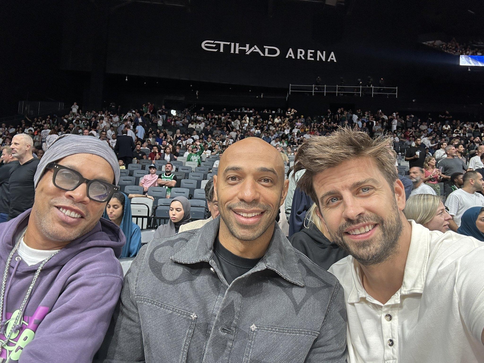值得一提的是,小罗、亨利也参加了相关活动,并与皮克一起观看NBA比赛。