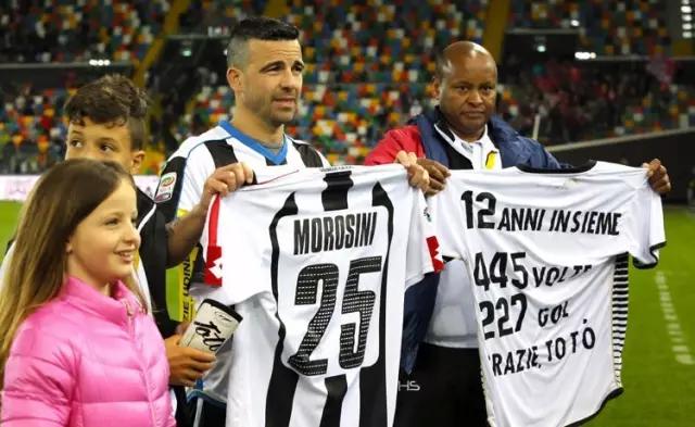 人们说迪纳塔莱是平民球星,这和他所效力的俱乐部有关,也关乎他谦逊、勤勉的职业精神。本赛季意甲最后一场的前一天,迪纳塔莱说自己独坐在更衣室里,哭得像个孩子,那一刻,12年的乌迪内斯生涯不断浮现眼前。比赛开始前,老队长不忘带上莫罗西尼的球衣,最后一次履行队长的职责。