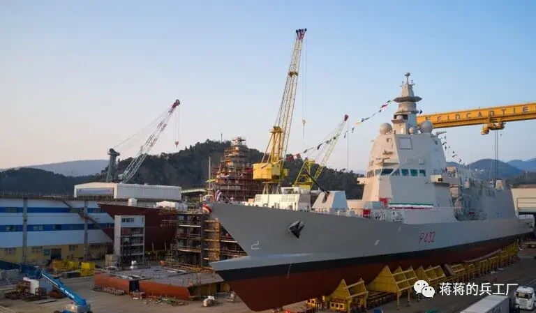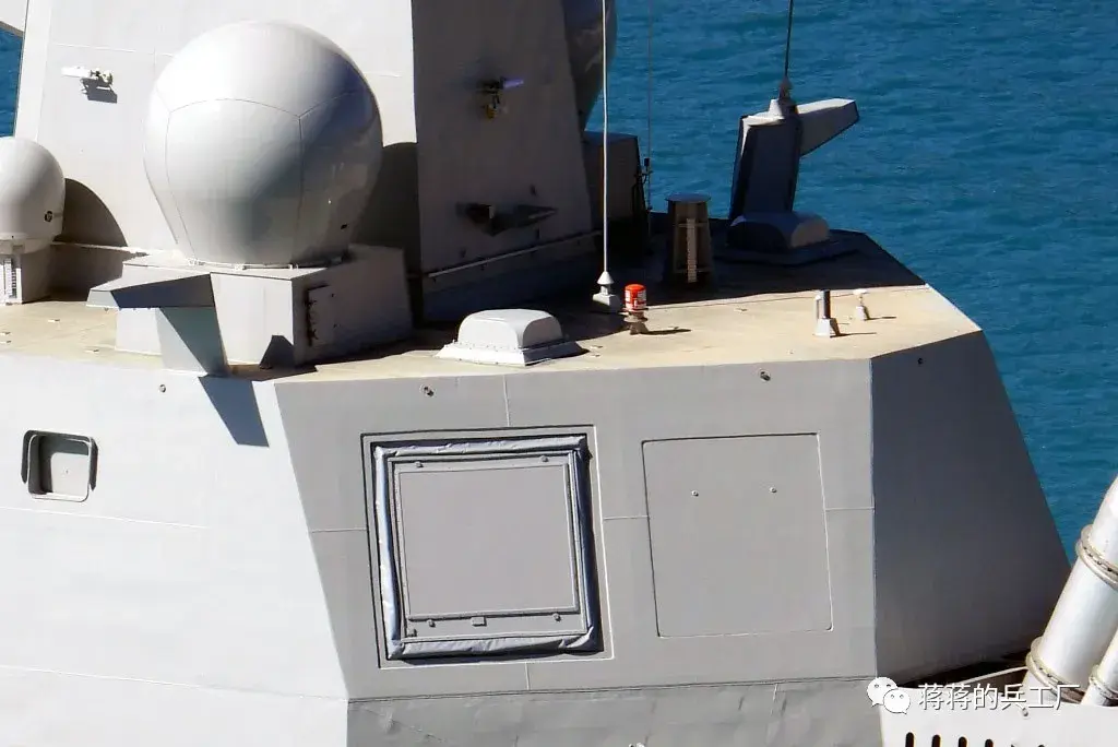 该舰在武备方面配置也比较特殊,轻装版就靠舰炮打天下,包括一门127mm/64超快炮,舰尾机库左侧一门紧凑版奥托76毫米 62倍径防空快炮,还有两门KBA B06 25/80机炮的遥控武器站。轻型加强版和重装版则在主炮后B炮位安装有两组八联装席尔瓦A50垂直发射系统,一半装紫菀30防空导弹,一半装32枚CAMM近程防空导弹,垂发后则对向布置四组双联装奥托玛特MK.2 Block 4反舰导弹或反潜导弹,就这个布置直接毁了本来还好的隐形设计,连个遮挡都没有,你要花钱干脆多配点垂发得了,何必这样?反潜方面,全装舰配备主动拖曳阵列声纳和可变深度声纳,黑鲨(Black Shark)533毫米重型鱼雷,轻装则只能用黑箭(Black Arrow)324mm轻型反潜鱼雷,机库可装2架NH90或1架EH101直升机。