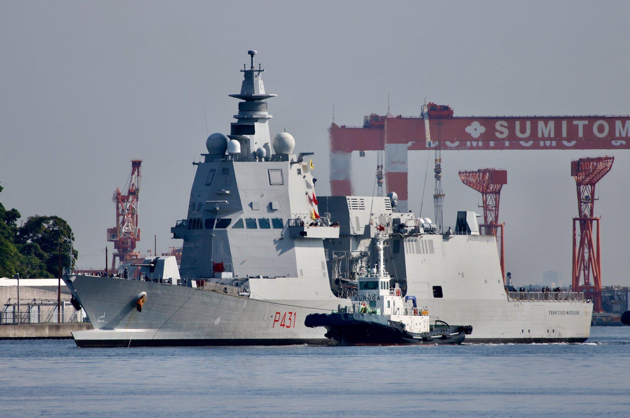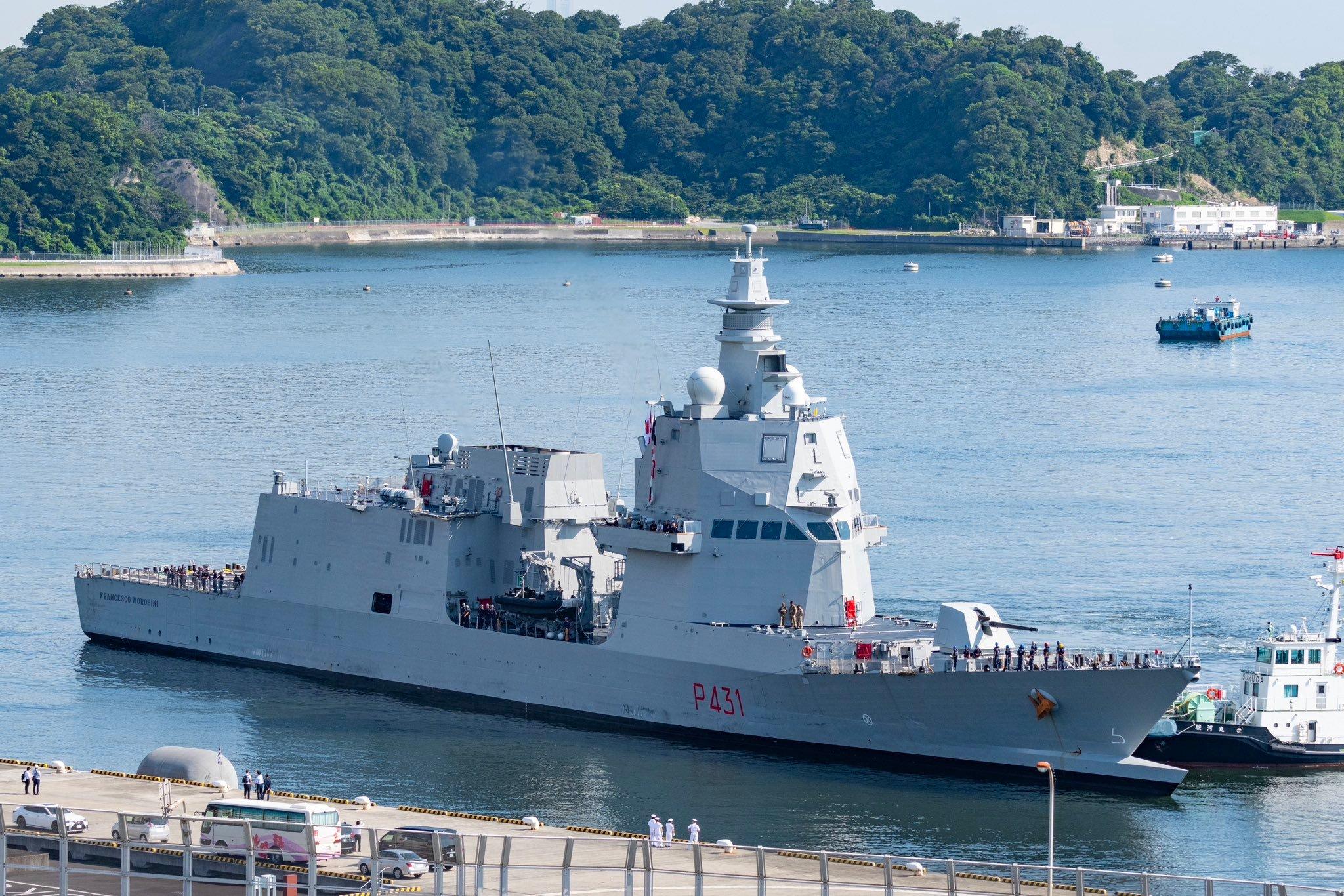 意大利海军“塔翁·迪雷韦尔级”护卫舰“弗朗切斯科·莫罗西尼”号抵达日本横须贺 , 新一代海上巡逻舰PPA, 大型远洋多功能巡逻舰, 重装版完全可以称做护卫舰, 这艘舰颇受争议的,主要关于以下四点.