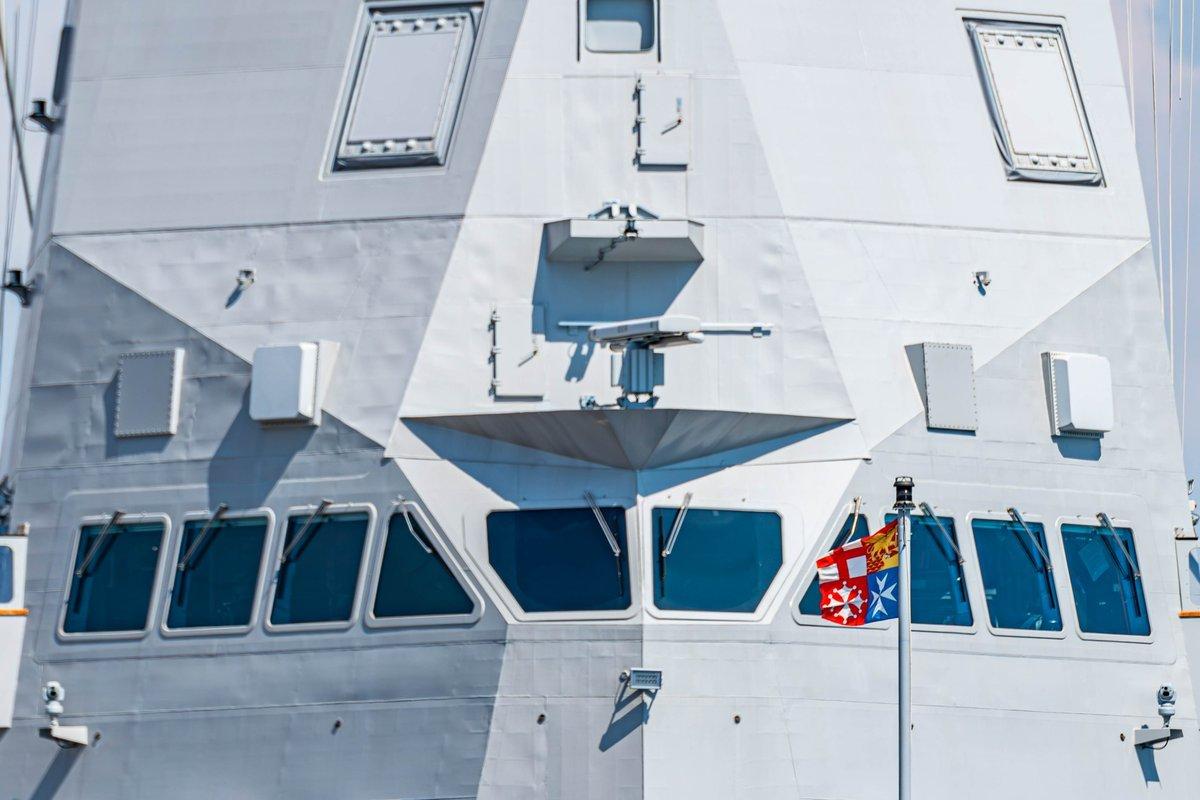 该舰的船电设备与驾驶舱也是非常先进的。该舰采用独特的短艏楼构型,大幅应用隐身设计和系统融合技术,上层建筑主体简洁明了,直接在舰桥顶部布置相控阵雷达,但外形修得要多难看有多难看。在主雷达方面,轻装版用的是近程泰坦神(Kronos Quad)X波段有源相控阵雷达,轻装加强版则是使用Kronos Quad型C波段有源相控阵雷达,全装版则使用了X/C两种波段阵面,但无论哪种其安装位置都保留,结果就是一个大额头还不对称。该舰还安装有SPS-732搜索雷达、2部X/Ka双波段导航雷达、1部敌我识别天线以及1组光电球,卫通天线、数据链、ZEUS电子战系统、SITEP MS-424远程定向声学系统、拖曳声呐,全装版还有2座ODLS 20诱饵发射系统。其V形驾驶舱也非常特殊,使用了玻璃化大显示屏幕、AR辅助驾驶系统和抬头显示器系统,还融合了航行舰桥和战情中心,该舰可以将航行相关资料参数直接投射在玻璃窗上,还可通过VR眼镜显示舰身360度的光电融合影像和战情信息。因此在自动运行下3人就能完成航行值班。该舰前两型才需要90人,全装型需要120人。