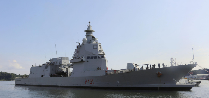 今年4月,意大利海军“弗朗切斯科·莫罗西尼”号巡逻舰,从拉斯佩齐亚海军基地出发前往印太地区,进行为期5个月的军事部署。据报道,该艘巡逻舰将在14个国家的15个港口开展军事外交活动。此次部署是该舰首次在地中海以外作战部署,将考验其远程部署能力。